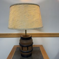 A Brandt Ranch Oak Vtg Rustic Wagon Wheel Hub Lamp & Burlap Drum Shade (#1930)$100Tn Of Tona, NY