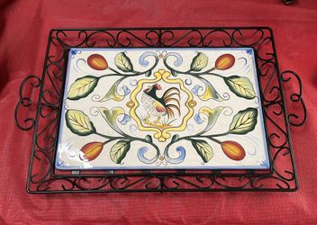 Fitz & Floyd Vintage Rooster Serving Platter Ceramic Black Metal Serving Tray$28Houston, TX