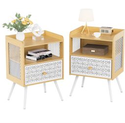Nightstands Set of 2, End Table with Open Shelf, 2-Tier Night Stand with Adjustable Metal Floral Drawer, Night Stand for Bedroom Sofa Side Table, End $55Edison, NJ