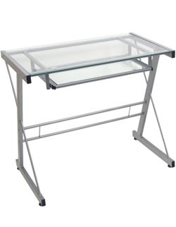 Metal and Glass Work From Home Laptop Computer Gaming Desk with Slide In Keyboard Tray Home Office, 31 Inch, Silver$50Edison, NJ