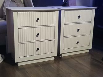 26"tall Nightstand Set of 2 with Charging Station, Wood Fluted Nightstand with Large Drawers, Modern White Bedroom Night Stand, Bedside Table for Bed$160Ontario, CA