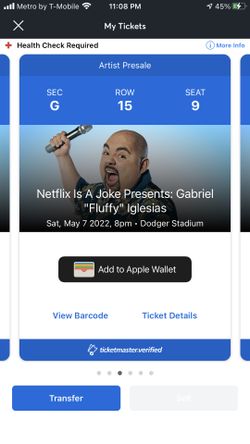 Gabriel Iglesias Floor Level Seats$275Los Angeles, CA