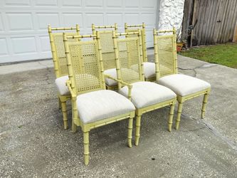 Vintage Set of 6 Faux Bamboo Dining Chairs by American of Martinsville - Hollywood Regency Coastal Furniture$420Orlando, FL