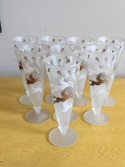 Vintage Set of Eight 1950s Libbey Glass Company "Cavalcade" Frosted Pilsner Glasses, See Full Description$75Orlando, FL