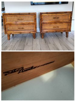 Vintage Mid Century American of Martinsville Faux Bamboo and Wicker Tortoise Shell Side Tables Night Stands$480Orlando, FL