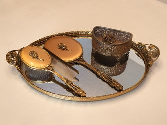 Vintage 1950s Hollywood Regency Filigree Ormolu Vanity Set. See Complete Description $120Orlando, FL