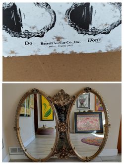 Vintage Bassett Gold Ornate Hollywood Regency Double Mirror With Black and Gold Speckled Glass in The Center Divider$295Orlando, FL