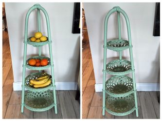 Vintage 4 Tier Mint Green Wicker Multipurpose Stand For Plants, Kitchen. Bathroom, Sunroom, Any Room .$65Orlando, FL