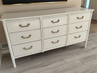 Vintage Palm Beach Style Classic Faux Bamboo Triple 9 Drawer Dresser With Original Hardware. $495Orlando, FL