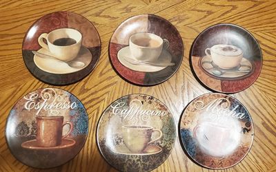 SHEDDER, 6 WALL COFFEE PLATES, PARTY SUPPLIES $50Bakersfield, CA