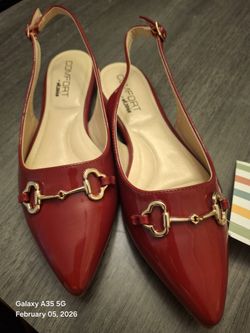 SoldWomen's 7.5 Red Flat Dress Shoes With Buckle$20Austin, TX