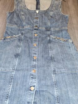 Women's Size 10 denim sheath dress featuring a button front, chain accents$20Austin, TX