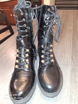 Women’s size 8.5 Calf High black Faux leather lace-up combat boots Goth Punk Emo$40Austin, TX