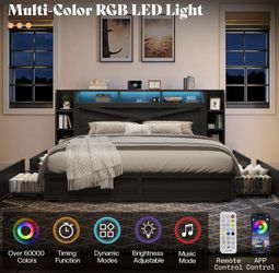 Queen Bed Frame with 4 Drawers, LED Bed Frame with Bookcase$200Ontario, CA
