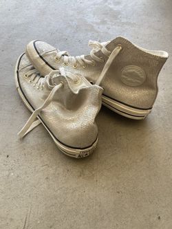 Size 10.5 Women’s White Textured Pearlescent Converse High Tops$20Mesa, AZ
