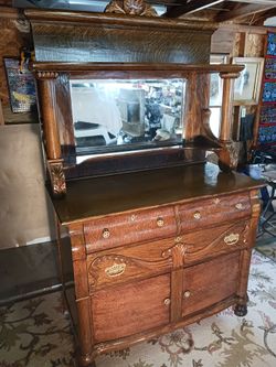 ELEGANT AND DISTINCTIVE TIGER OAK BUFFET FROM THE 1920'S IN DECENT CONDITION.$450Sharpsburg, PA