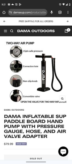 DAMA INFLATABLE SUP PADDLE BOARD HAND PUMP WITH PRESSURE GAUGE, HOSE, AND AIR VALVE ADAPTER