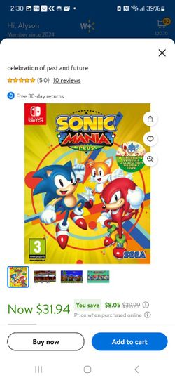 Sonic Mania Plus Nintindo Switch Game$25Fresno, CA