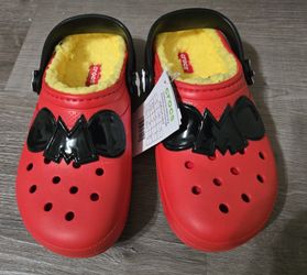New Crocs Disney Mickey Mouse Red Clog Slip on Shoes Fuzzy Lining Kids Size J 3$40Hawthorne, CA