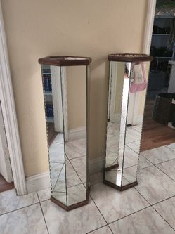 1970's Mirror & Oak Hexagon Art Pedestals 35" Tall$600Fresno, CA