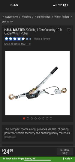 Hall master Cable Winch Puller$15Las Vegas, NV