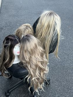 Four long blonde lace wigs hair extensions and three foam heads $200Rancho Palos Verdes, CA