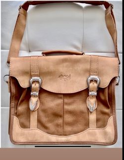 Schaefer Western Outfitter Heavy Tan Saddle Leather And Canvas Briefcase/Messenger Bag USA$125San Diego, CA