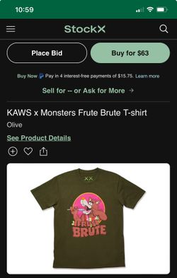 KAWS x Monsters Frute Brute T-shirt Olive$50South Gate, CA