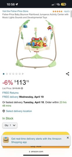 Fisher-Price Baby Bouncer Rainforest Jumperoo Activity Center with Music Lights Sounds and Developmental Toys$80Cambridge, MA