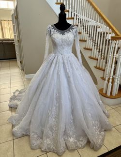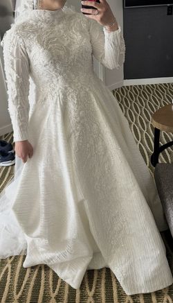 Modest White European Handmade Beaded Wedding Dress Size 4-6. Pearl Veil & Petticoat Included.$2,000Prospect Heights, IL