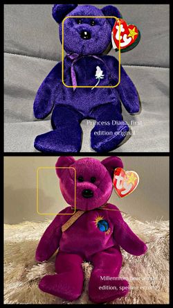 Princess Diana First Edition Beanie Baby Also Include First Edition Millennium With Misspelled Tag.$35,000Bakersfield, CA