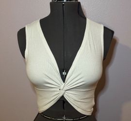 White Ribbed Twist Front Crop Top S$15Fontana, CA