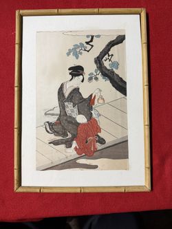 Antique Japanese Woodblock Print Eiri Hosado "A woman has A fish bottle" C 1800s$100El Cajon, CA