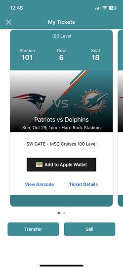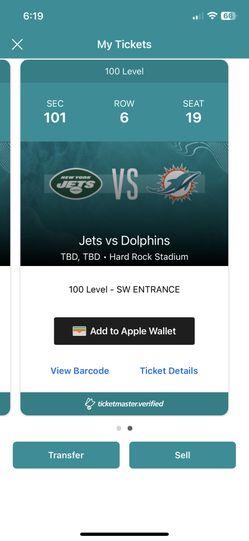 Miami Dolphins Tickets (2 Tickets)$700Pembroke Pines, FL
