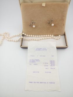 14K Clasp Saltwater Pearl Necklace 925 Real Pearl Earrings Original Box And Receipt 1990 People's Jewelers $950Vancouver, WA