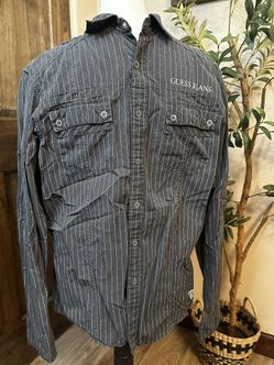 Guess Jeans Vtg Men's Shirt, Black Grey Stripe Long Sleeve Snap Button Up Size M$10Monessen, PA