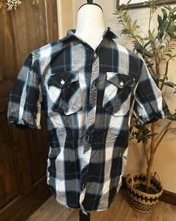 Coastal men's blue and white plaid western short sleeve shirt with pearl snaps M$8Monessen, PA