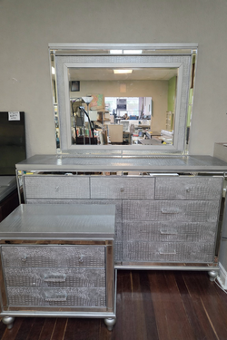 New Glam Silver Mirror Trim Dresser