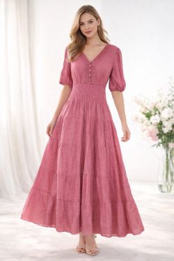 Dusty Rose Smocked Maxi Dress – Feminine & Flowy$10Fontana, CA