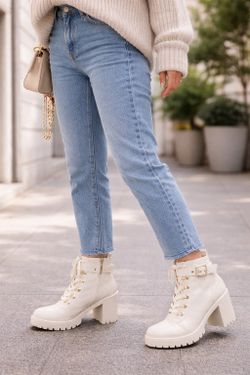 White Lace-Up Ankle Boots, Size 5½$10Fontana, CA