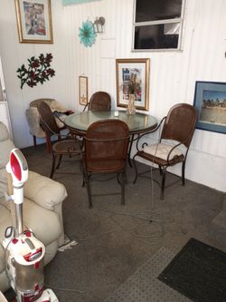 Wrought Iron Table With Half Inch Beveled Glass 4ft Four Chairs With Wicker, One Needs Repair. $200Cape Coral, FL