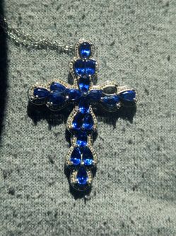 Silver 925 Cross Pendant With Blue Gemstones$10Rancho Cordova, CA