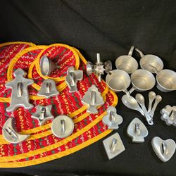 Vtg Kitchen Aluminum Cookie Cutters Scoop Cups & Spoons Placemat Primitive Lot$35Lacey, WA