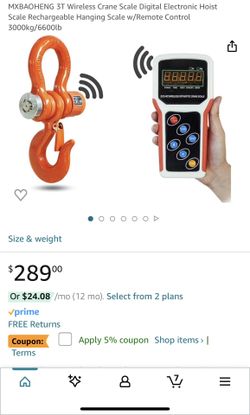 MXBAOHENG 3T Wireless Crane Scale Digital Electronic Hoist Scale Rechargeable Hanging Scale w/Remote Control 3000kg/6600lb$150Chino, CA