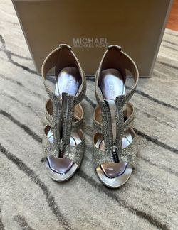 Michael Kors Berkley T Strap Glitter toe heels Color Silver size 9M$50Heathrow, FL