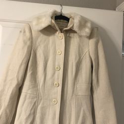 Crème Coat W Removable Fur Collar $14Rancho Cordova, CA