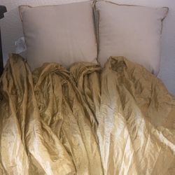 Pair Of Linen & Gold Pillows With 4 Gold Curtains$35Rancho Cordova, CA