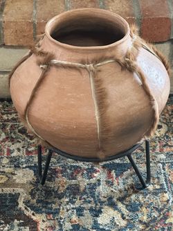 Vintage Mexican Tarahumara Indian leather-bound Pot with Stand$40El Paso, TX