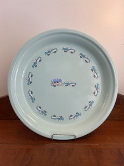Marble Canyon Mint Green Airstream Camper Enamel Round Platter Tray 12.5” made in Thailand $50New Milford, CT