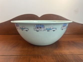 Marble Canyon Mint Green Airstream Camper Enamel Bowl 10.25” x 4” made in Thailand $45New Milford, CT